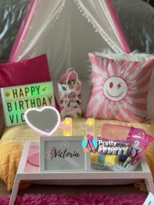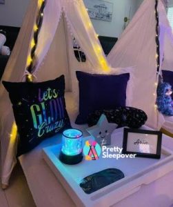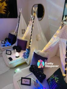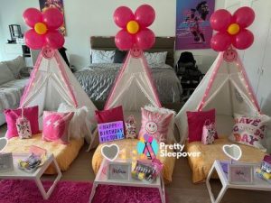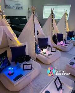 If you have something in mind that you want, a specific color theme or character, we can customize the sleepover set-up for you!